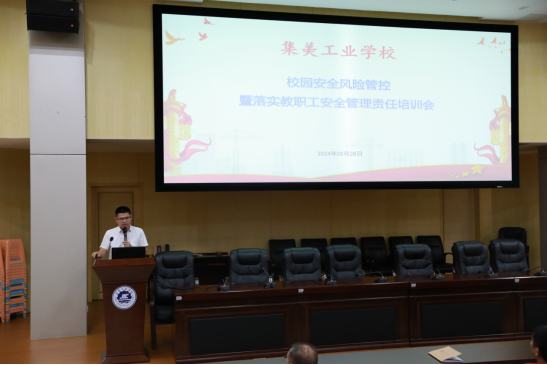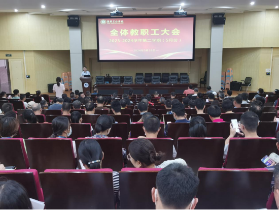 5月28日下午,我校在敬贤楼二楼报告厅召开5月份教职工大会。大会就学校5月份重点工作进行总结,人事财务处黄晓锋主任作师德师风教育,并邀请福建省应急厅应急管理专家、厦门市应急管理专家朱育志专家作校园安全管理提升暨重大事故隐患整治培训。学校领导班子及全体教职工参加会议,会议由办公室副主任杨勇主持。