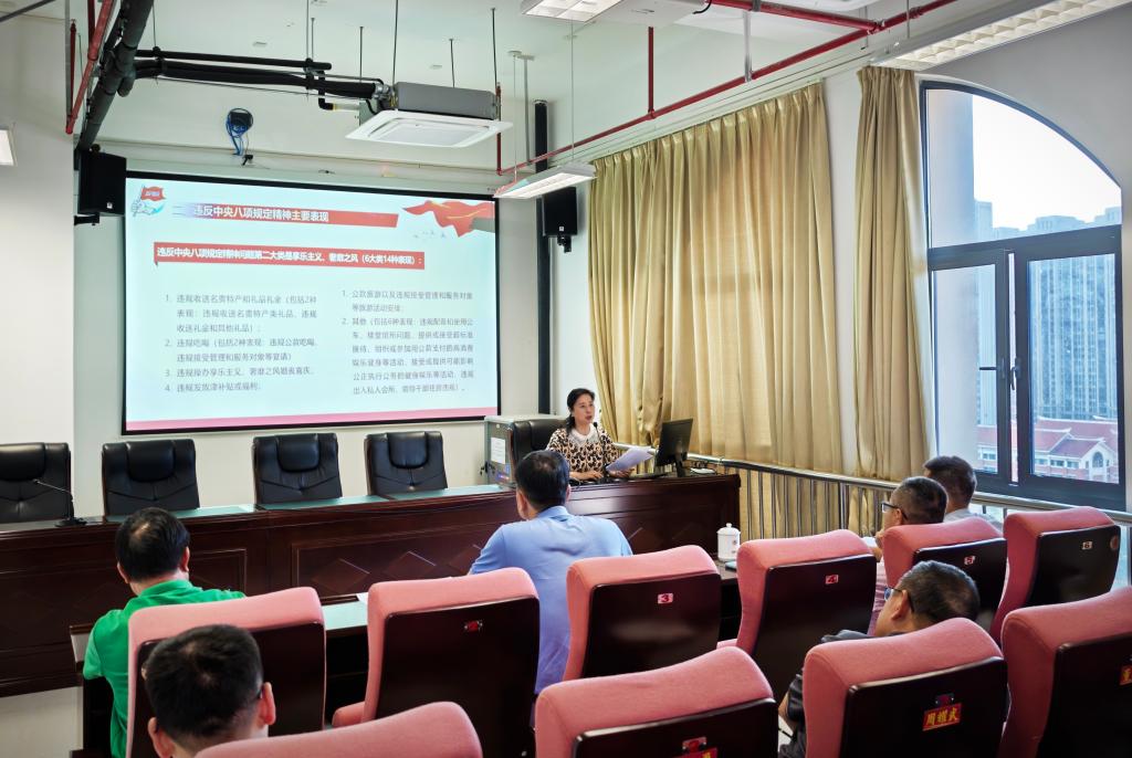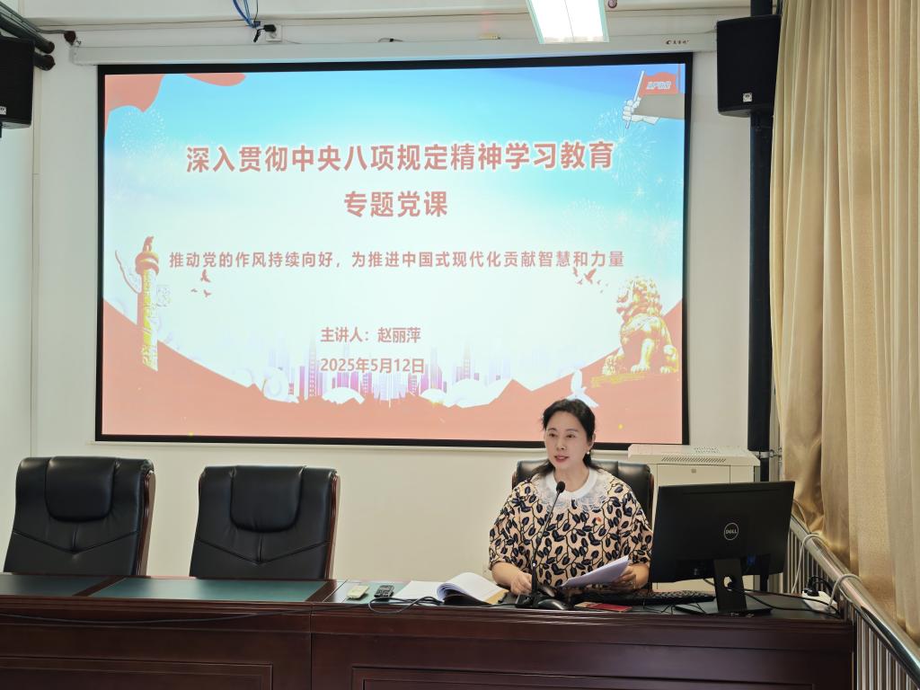 会上,党委书记赵丽萍以《推动党的作风持续向好 为推进中国式现代化贡献智慧和力量》为题,为党员干部讲授深入贯彻中央八项规定精神学习教育专题党课。赵丽萍书记围绕中央八项规定精神的主要内容、违反中央八项规定精神主要表现、贯彻中央八项规定精神助力学校高质量发展三个方面,结合学校实际,讲解深入贯彻中央八项规定精神学习教育的具体要求。