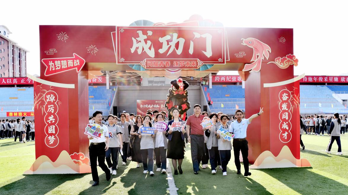 誓师大会在赵丽萍书记的带领下,全体学生高举右手,齐声宣誓。“全力以赴,分秒必争;自信自强,斗志昂扬……” 铿锵有力的誓言如惊雷炸响,回荡在操场,彰显着决胜学考的坚定信念。宣誓完毕,精彩的舞龙舞狮表演惊艳登场。金龙翻腾,雄狮舞动,寓意着同学们将在学考中大展身手、旗开得胜,现场气氛被推向顶点。最后,在校领导引领下学生门昂首阔步穿过 “状元门”,迈向学考胜利的新征程。