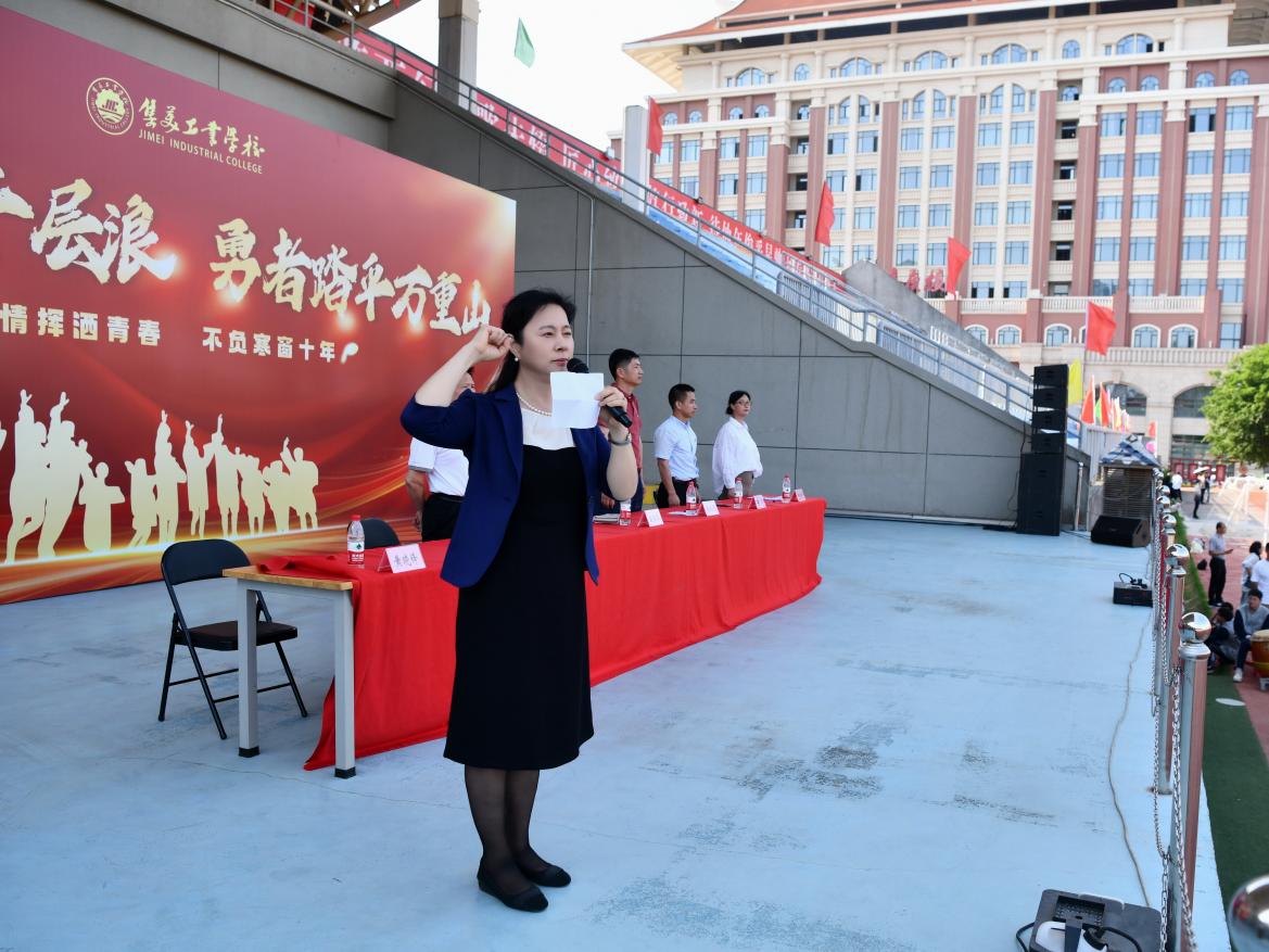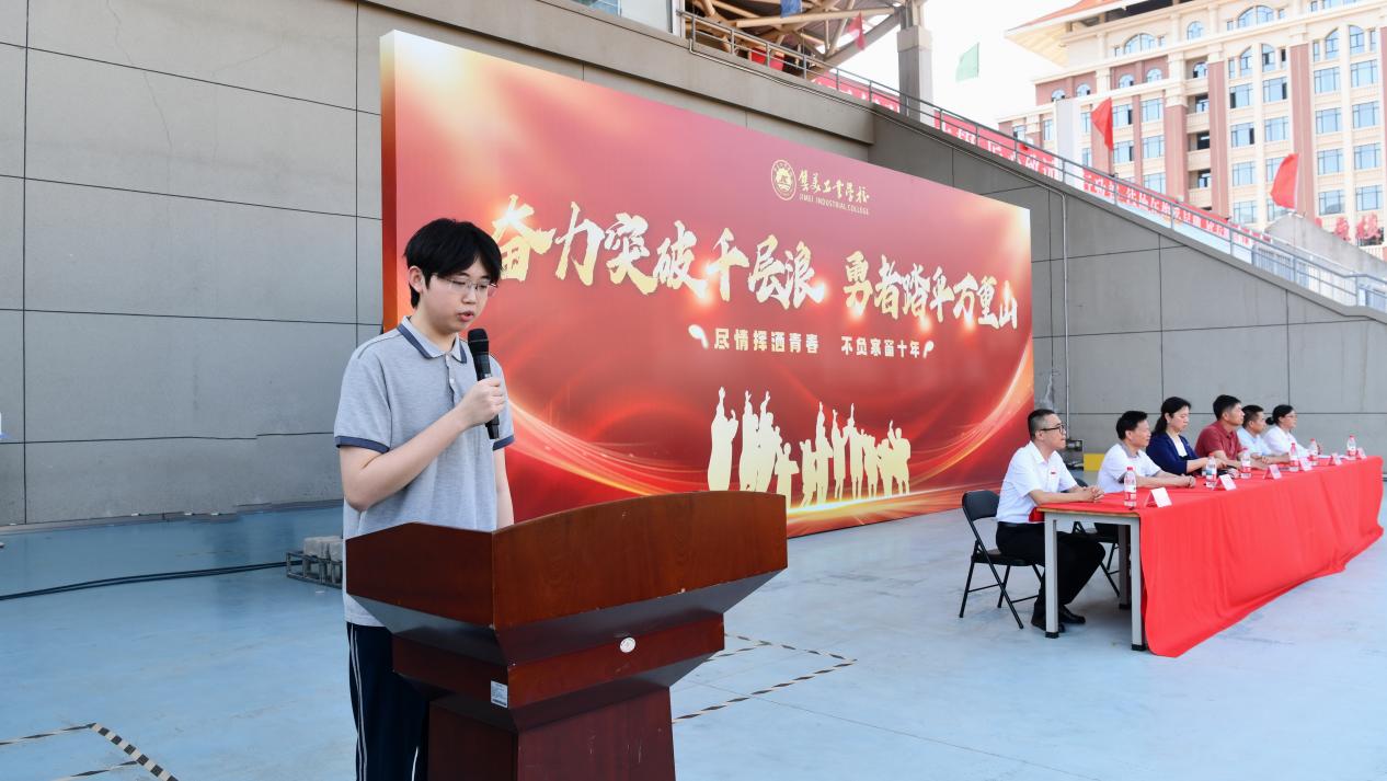 “我相信我就是我,我相信明天……” 激昂的旋律冲破云霄,将青春的热血与豪情播撒在校园的每一个角落。2025年5月13 日下午我校 2023 级学考冲刺誓师大会在操场盛大启幕。校领导班子、系部主任、班主任、教师代表、全体学生及家长代表汇聚于此,共同奏响学考冲刺的激昂战歌,为青春拼搏注入无限动力。校党委书记赵丽萍、校长陈瑞锦、副校长黄晓锋、副校长欧阳超、副校长陈飞出席誓师大会,大会由黄晓锋副校长主持。