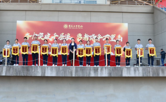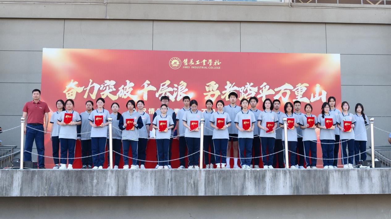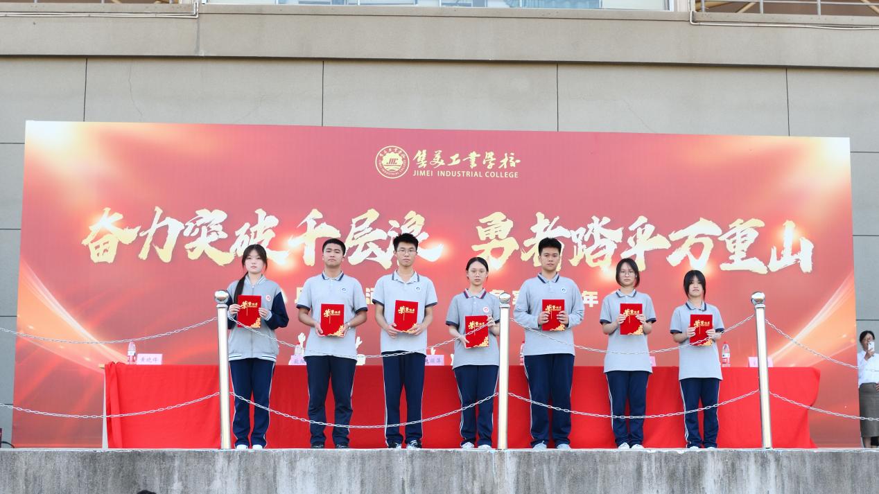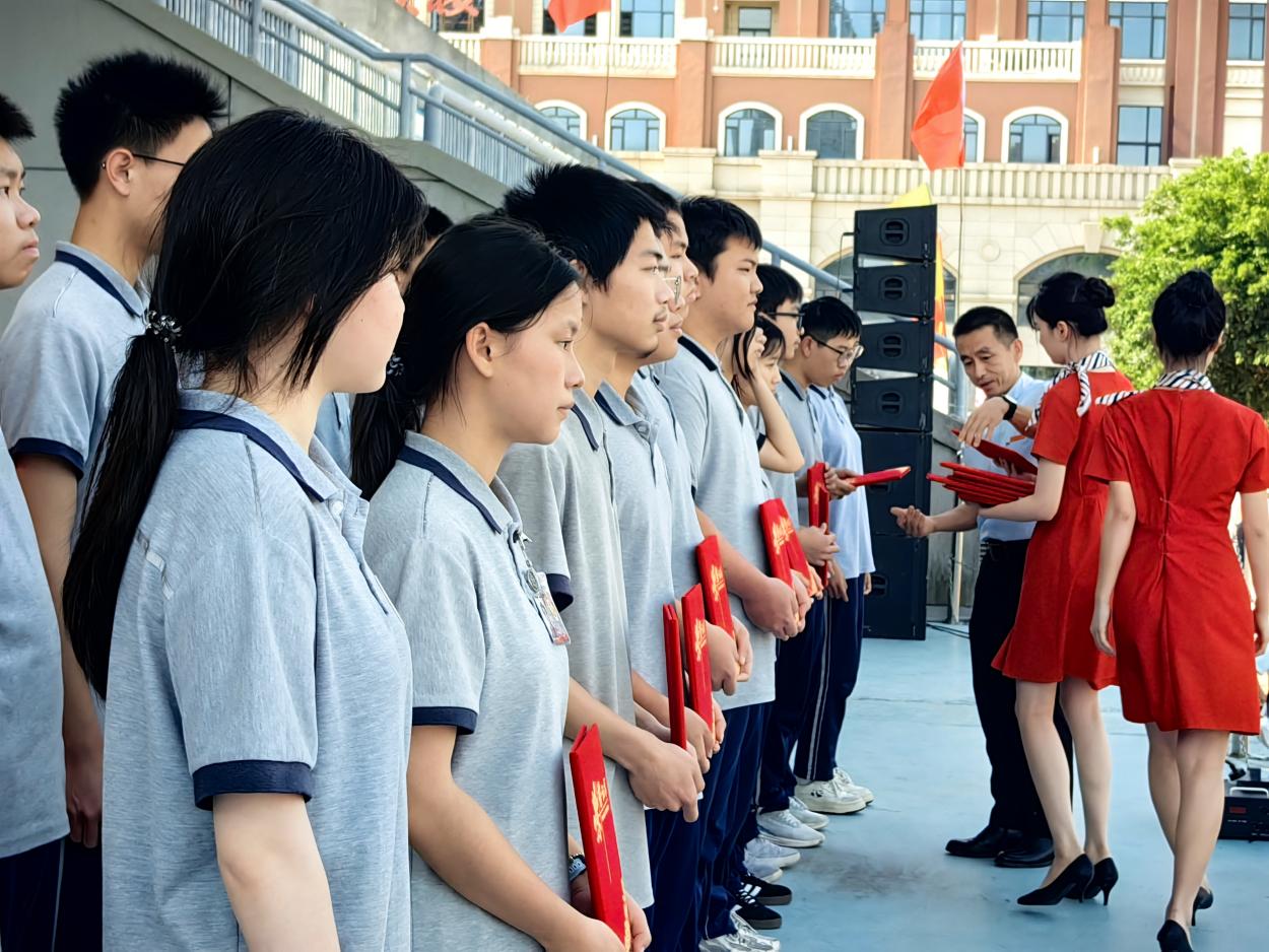 颁奖环节率先点燃大会激情。校领导依次为学业水平测试中表现卓越、进步突出,以及荣获 23 级质检前 50 名和进步奖的同学颁发 2025年崇实奖教金。金灿灿的奖状在阳光下闪耀,获奖学子步伐坚定走上领奖台,脸上洋溢着自豪。台下雷鸣般的掌声,是对优秀者的致敬,更是对自身奋进的鞭策。随后,优胜班级接过鲜红锦旗,那迎风招展的旗帜,激励着全体同学以榜样为标杆,在学考赛道上奋勇争先。