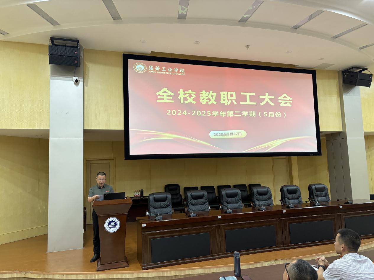 会议伊始,全体教职工共同观看了学校五月份重点工作总结视频。视频以生动的画面和详实的记录,全面回顾了五月份学校在党的建设、高职建设、23级学考、职教周活动、师生发展、校际交流等各方面的工作成果,让教职工们直观感受到学校近期的蓬勃发展与点滴变化,为后续工作的开展提供了宝贵的参考与借鉴。