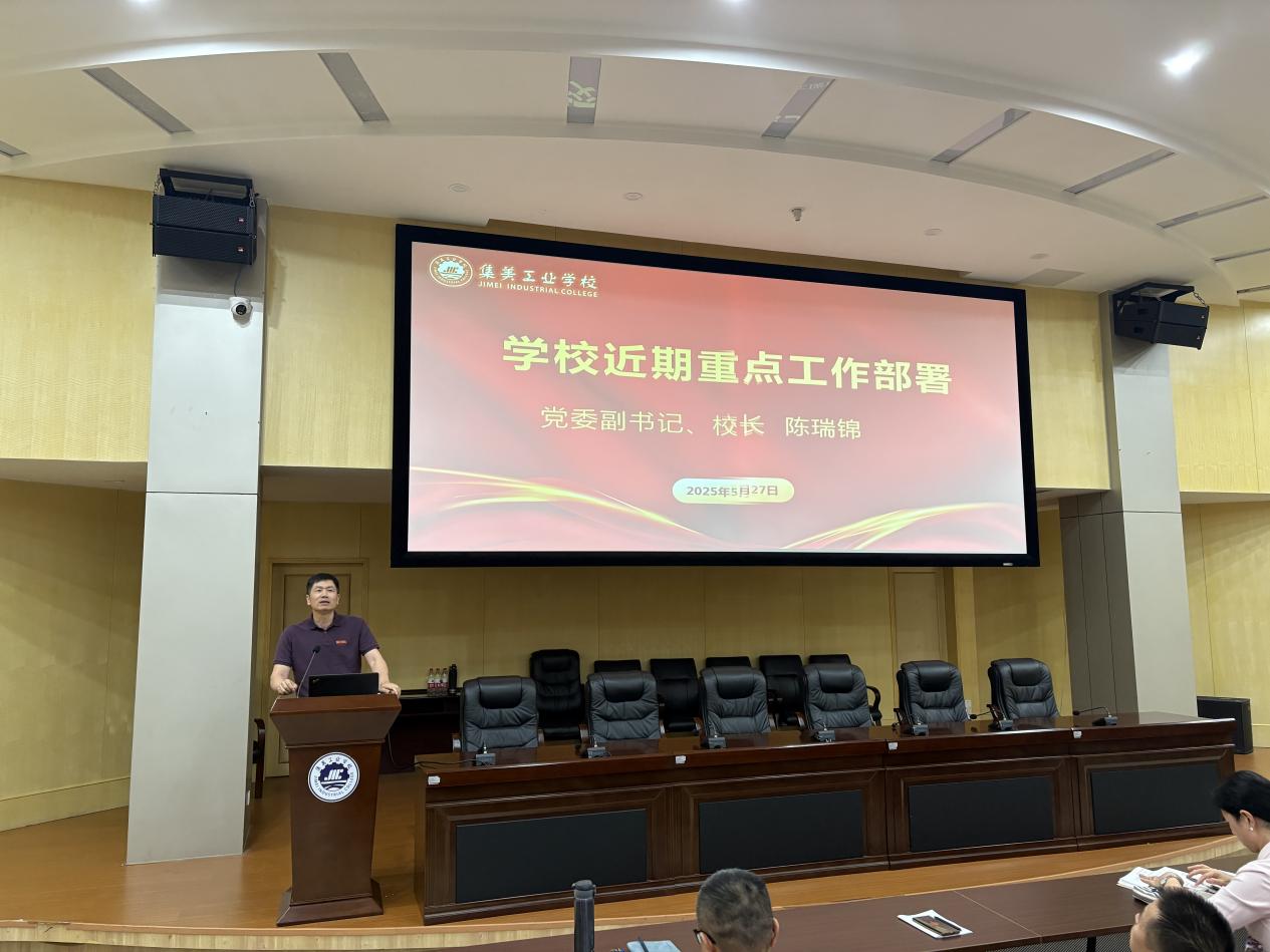 党委副书记、校长陈瑞锦在会上对学校近期重点工作进行了全面部署。他从“坚持系统观点”、“坚持底线思维”、“坚持改革创新”、“坚持优质服务”四点出发,总结了学校近期的工作成果,鼓励全体教职工团结协作、勇于创新,为学校的发展贡献自己的力量。