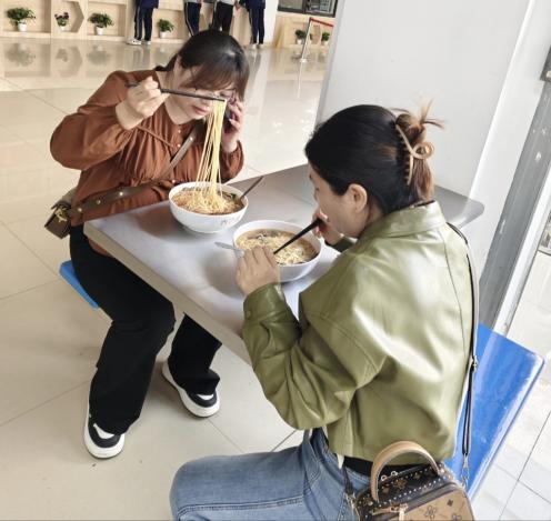 家委会代表走进学校食堂,开启陪餐之旅。在食堂工作人员的引导下,家委会成员首先参观了食堂的各个功能区域,包括食材储存间、加工操作间、餐具消毒间等。他们仔细查看食材的新鲜程度、储存条件,以及食品加工流程的规范性。陪餐过程中,家委会成员与学生一同排队打餐、就餐,亲身体验食堂的饭菜质量、口味和服务态度。他们与学生亲切交流,询问学生对饭菜的满意度和饮食偏好。家委会成员对食堂的整体环境、饭菜质量和服务水平给予了充分肯定,同时也提出了一些建设性的意见