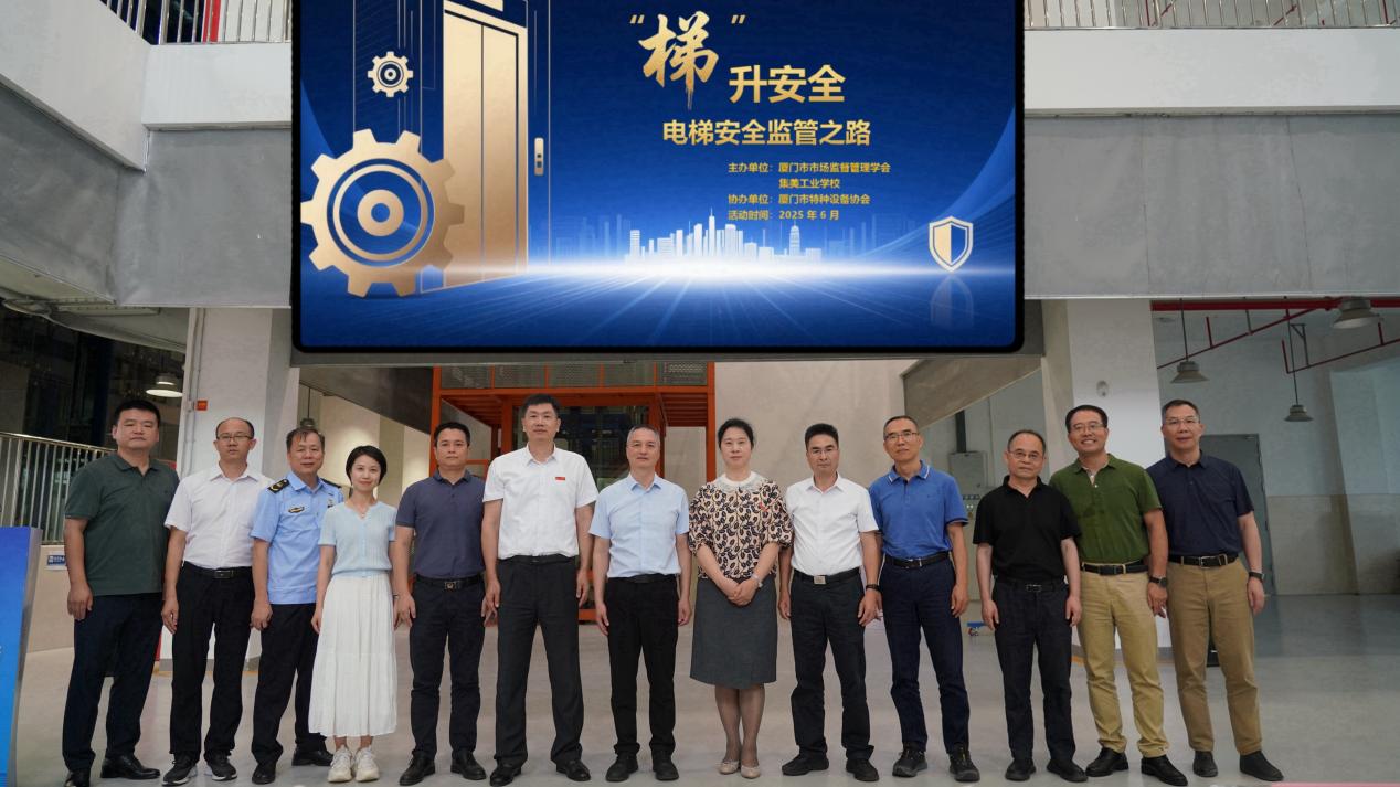 2025年6月4日上午,由厦门市市场监督管理学会与集美工业学校联合主办的“电梯安全监管之路”特种设备主题沙龙在集美工业学校成功举办。此次活动汇聚了政府监管部门、行业协会、企业代表及技术专家等多方专业人士,共同探讨电梯安全监管与技术创新的新路径,为提升电梯安全管理水平提供了宝贵思路。厦门市市场监督管理局副局长、市市场监督管理学会会长钟向阳,厦门市市场监督管理局副局长何招发,厦门市特检院院长黄学斌,厦门市特种设备协会会长邹志坚,集美工业学校党委书记赵丽萍,党委副书记、校长陈瑞锦,教务处主任孙跃岗,各区级市场监督管理局主要领导及电梯相关知名企业主要负责人出席了本次主题沙龙活动。