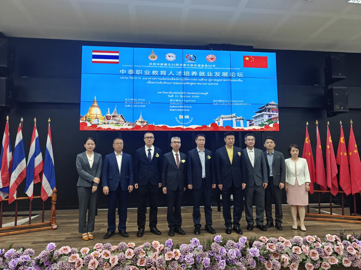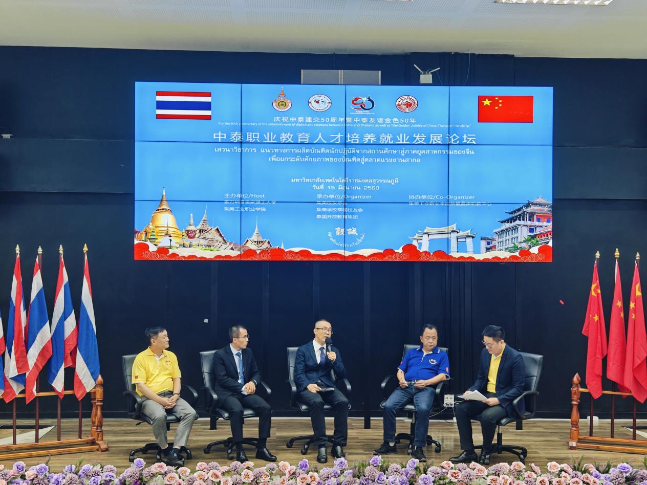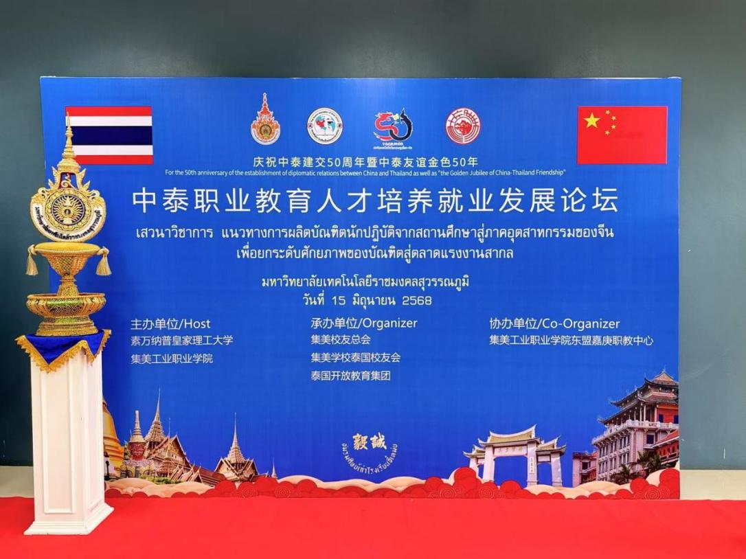2025年6月15日下午,“中泰职业教育人才培养就业发展论坛”在泰国素万纳普皇家理工大学成功召开。本次论坛由素万纳普皇家理工大学、集美工业职业学院(集美工业学校)共同主办,集美校友总会、集美学校泰国校友会、泰国开放教育集团承办,集美工业职业学院东盟嘉庚职教中心协办。