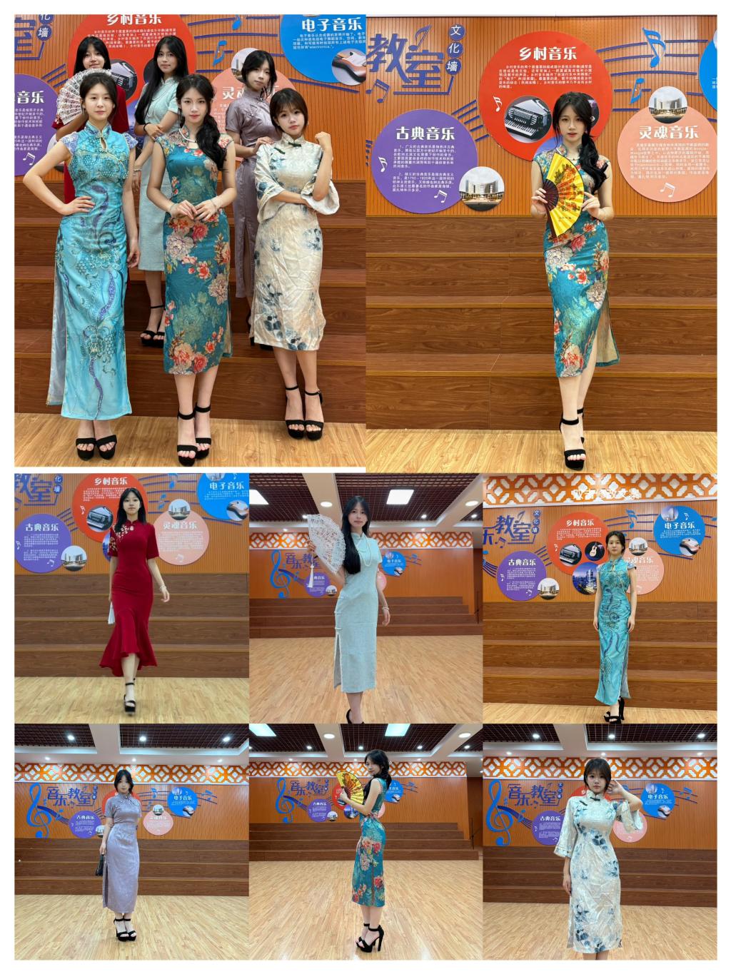 本次比赛由校团委主办,思政与人文教研室、人文艺术组协办,人文艺术组老师们担任比赛项目评委报名阶段,来自各专业的同学们积极在工作群询问,展现出对国潮文化的浓厚兴趣和参与热情。初赛于 4 月 14 日下午在融智楼音乐教室举行,参赛选手们着比赛要求的服装,依次走上 T 台,按照指定路线进行走秀,初步展示了各自特点和个人风采,经过评委的认真评选,20名优秀选手脱颖而出晋级复赛。