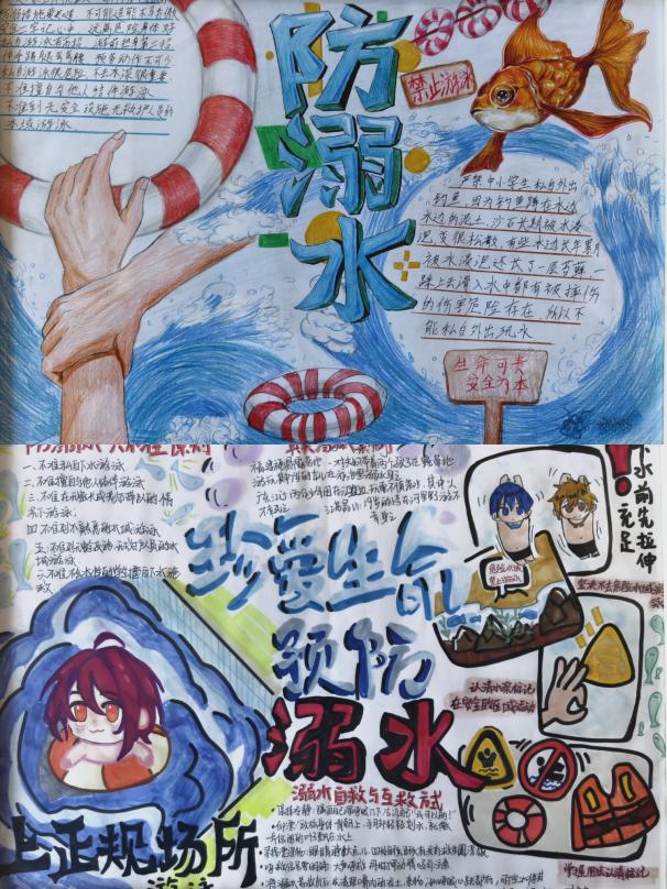 为强化学生防溺水安全意识,普及防溺水知识,营造浓厚的校园安全文化氛围,我校近期开展了防溺水手抄报绘制比赛。此次活动在全校范围内引发了热烈反响,同学们积极参与,用画笔传递安全理念。