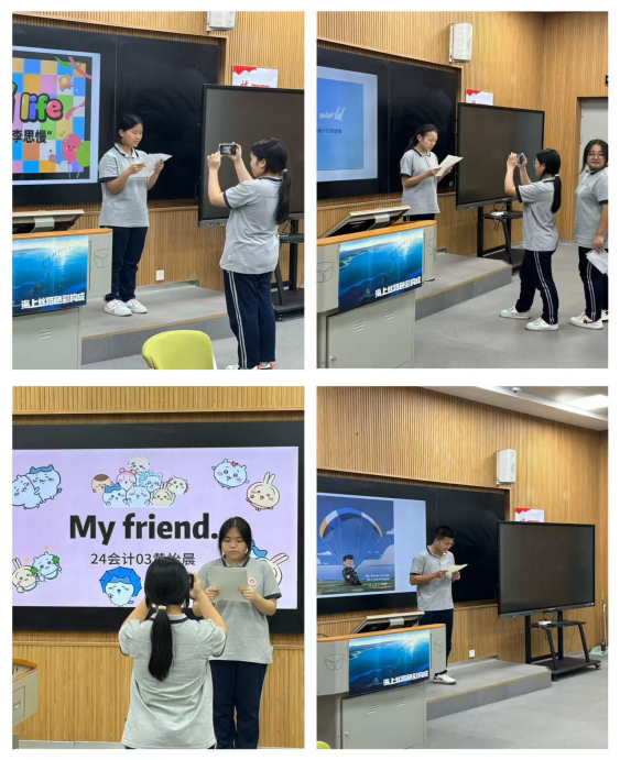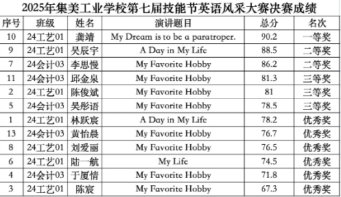 五月初赛阶段,参赛选手们通过英语朗诵、才艺展示等环节,充分展现了自己的英语水平和个人魅力。经过激烈角逐12名选手脱颖而出,晋级决赛。六月决赛现场,选手们在英语演讲、即兴问答等环节中火力全开面对My Favorite Hobby, My Dream Job, A Day In My Life等贴近生活与专业的选题,选手们从容应对,用地道的英语表达化解难题