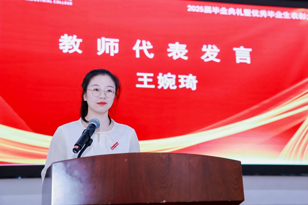 教师代表王婉琦老师用温暖的嘱托为同学们点亮了前行的明灯。她鼓励毕业生保持对知识的渴望,在未来的学习中不断充实自己、拓宽视野。愿毕业生们以梦想为帆探索天地,既有容纳百川的格局,也有乘风破浪的勇气,在广阔的天地间自由翱翔,书写属于自己的精彩人生。