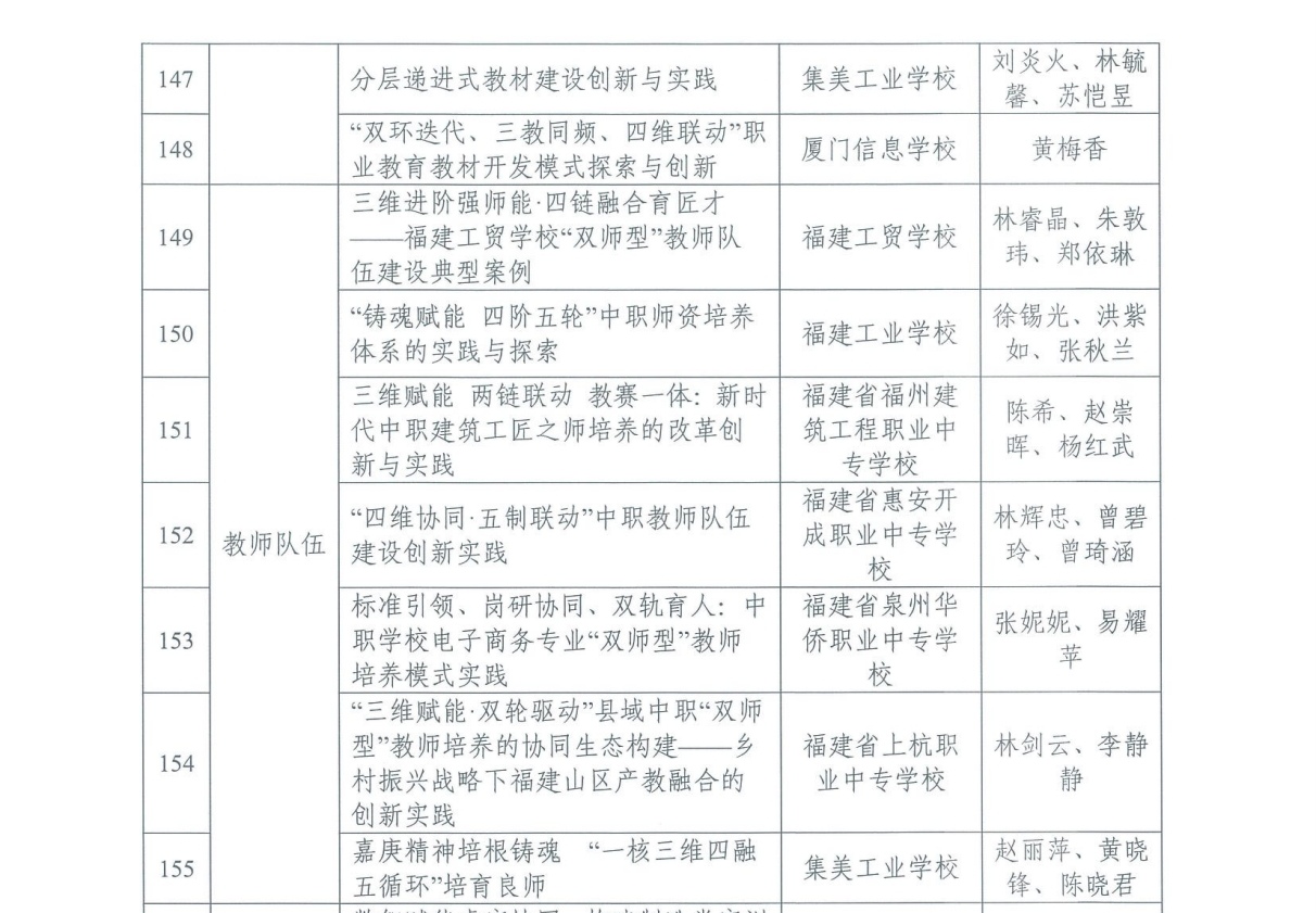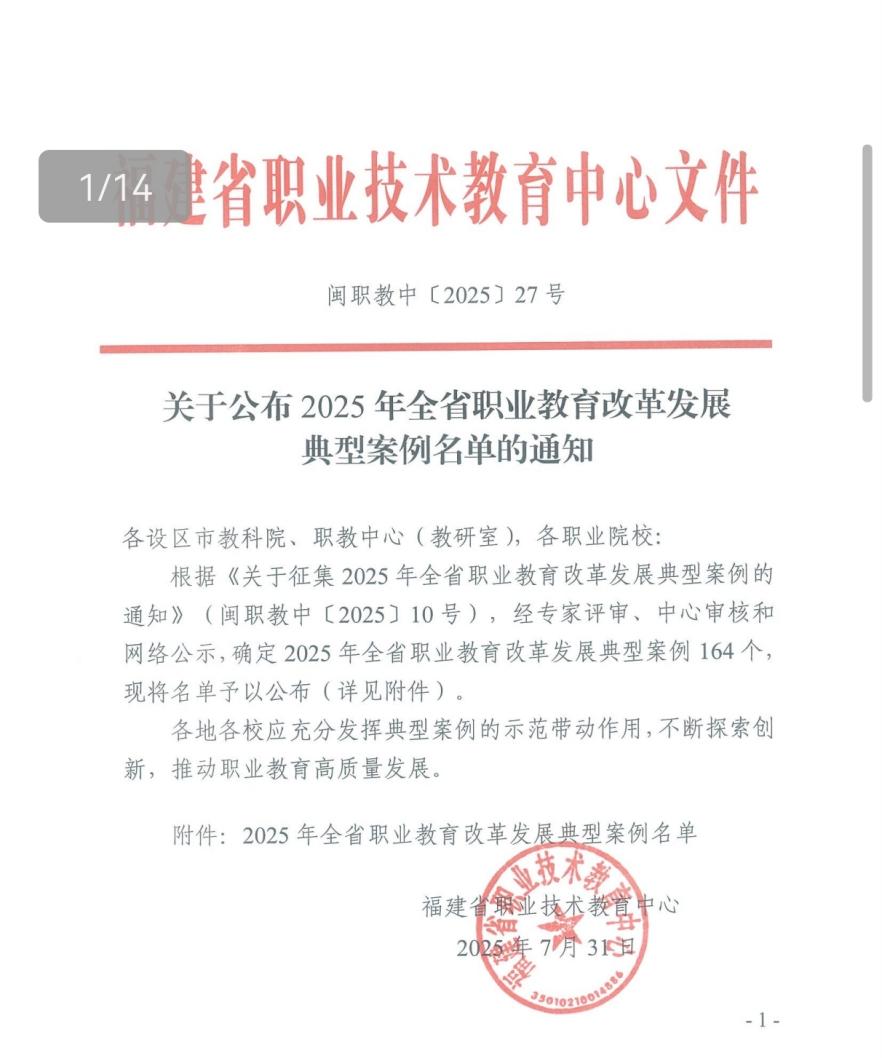 近日,福建省职业技术教育中心公布2025年全省职业教育改革发展典型案例名单,集美工业学校在教材建设、教师队伍多个案例成功入选,展现了学校在职业教育改革中的积极探索与显著成效。