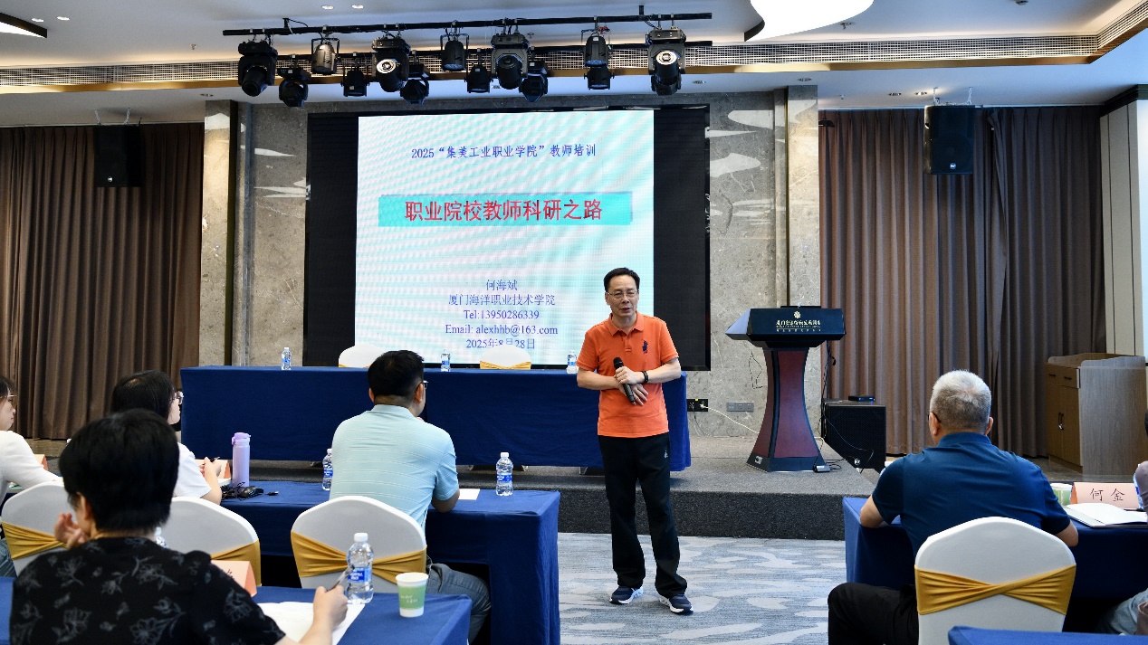在上午的讲座《职业院校教师科研之路》中,厦门海洋职业技术学院何海斌教授结合自身经历,开篇强调科研是需长期投入的终身事业,引导教师树立长期科研意识;针对“高职教师如何做科研”,提出“大处着眼、小处着手”原则,明确科研要立足实际工作,初期优先解决技术问题以保障科研“生存”、积累成果,有基础后再探索科学问题作为长远“发展”方向。在科研发展思路与对策上,他强调“有组织的科研”定位,倡导“立地的科研”,要求教师“下沉到企业”了解需求,研究方向对接企业与产业需求,确保成果落地应用。此外,他还介绍中外期刊分类,详解中文期刊“三审三校”制度,为成果发表提供参考。讲座贴合高职教师科研实际,有宏观思路也有具体方法,为教师科研提供启发。