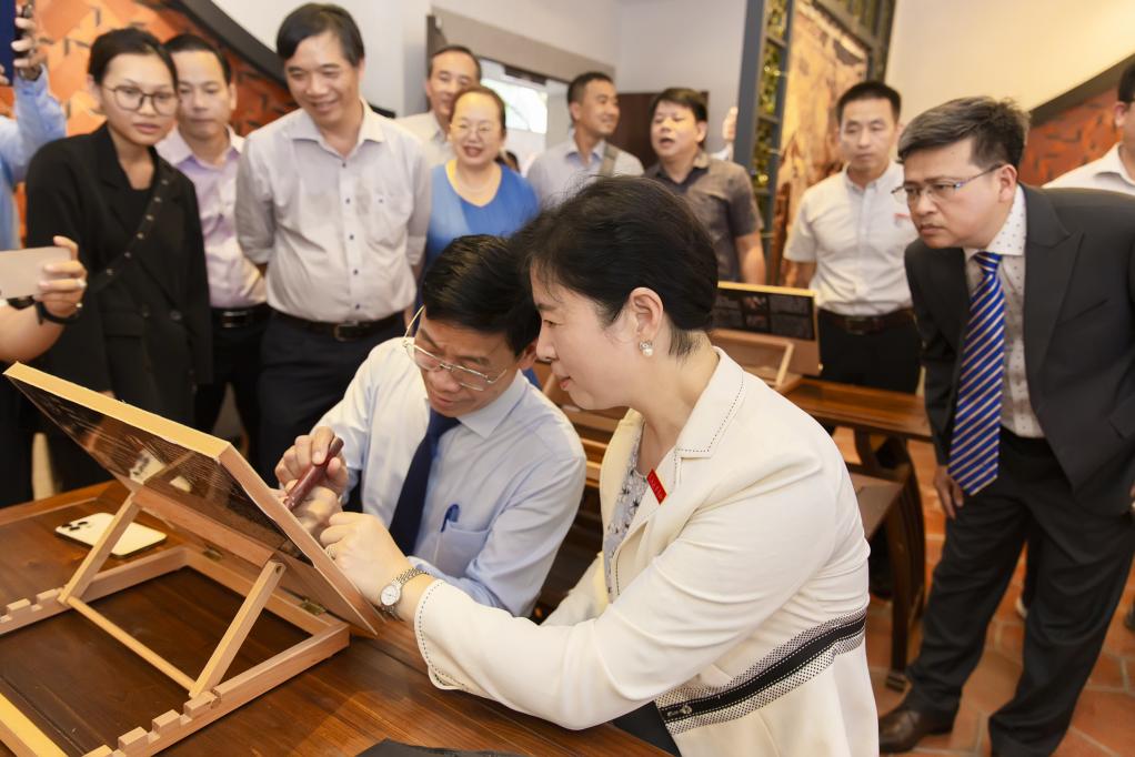 赵丽萍书记对阮宣欢一行表示热烈欢迎。指出,今年是中越建交75周年暨中越人文交流年,期待两校以此为契机、以现有越南留学生为基础,进一步扩大两校在人文交流、师资培养、学生交换等项目合作的广度和深度,进一步提升两校交流合作水平,共同探讨开展促进两校高质量发展的合作项目,积极投身“一带一路”倡议,携手为中越两国教育事业繁荣发展做出切实贡献。