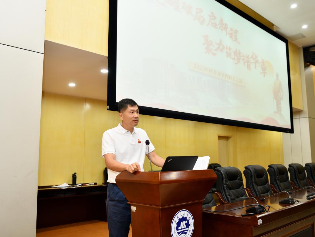 8月31日上午,我校在敬贤楼二楼报告厅隆重召开2025-2026学年第一学期开学教职工大会,学校领导班子及全体教职工参加会议。会议由办公室副主任杨勇主持。