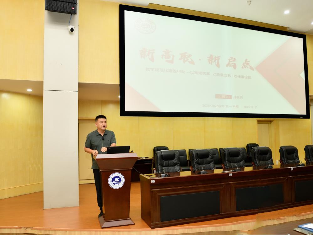 教务处主任孙跃岗部署教学常规工作,强调要推进“五金”建设,注重人工智能技术与课堂教学、实训环节的深度融合,表示将通过开展教学能力竞赛、完善教学质量监测体系等举措,切实提升人才培养质量。