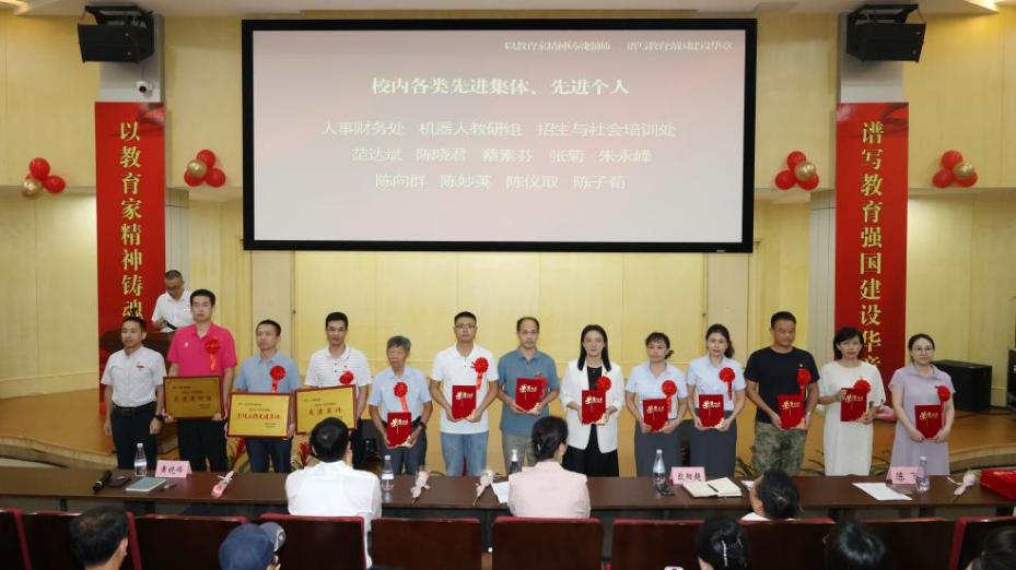 金风送爽颂师恩,丹桂飘香启新程。在第41个教师节来临之际,为大力弘扬教育家精神,彰显新时代教师队伍风采,9月9日下午,学校在敬贤楼报告厅隆重召开庆祝第41个教师节暨2024-2025年度先进表彰大会。全体教职工参会,大会由黄晓锋副校长主持。