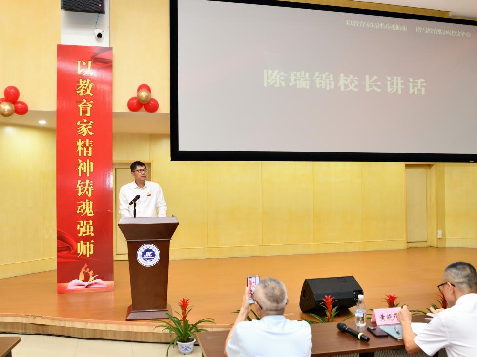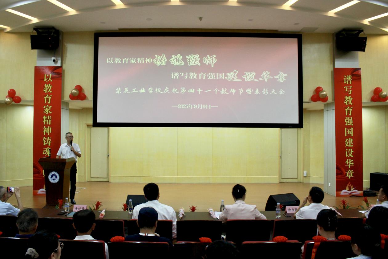 最后,党委副书记、校长陈瑞锦发表讲话。他指出,学校近年在教育教学、技能竞赛、学生发展等领域收获的成果,背后离不开每一位教师的无私奉献,他代表学校向全体教职工送上节日祝福与诚挚感谢,希望全体教职工要大力弘扬教育家精神,始终坚守育人初心,切实扛起教育使命。当前正处于职业教育发展的新起点,他号召全体教师以热爱践行使命、以实干开创未来,携手推动学校实现高质量发展。