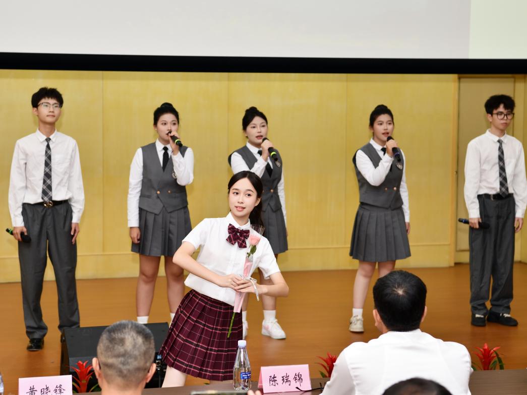 大会伊始,充满温情与敬意的文艺演出拉开帷幕,为现场增添了浓厚的节日氛围。学生们带来的乐器演奏《弦歌寄远,师泽长流》,以悠扬旋律传递对教师的感恩之情;歌舞《梨音舞韵念师恩》舞姿优美、歌声动人,尽显学子对师长的尊崇;由沈永松、庄少鹏、郑怡萍老师与学生共同演绎的诗歌朗诵《以教育家精神,筑就教育强国之脊梁》,铿锵有力地诠释了教育家精神的内涵,引发全场共鸣。