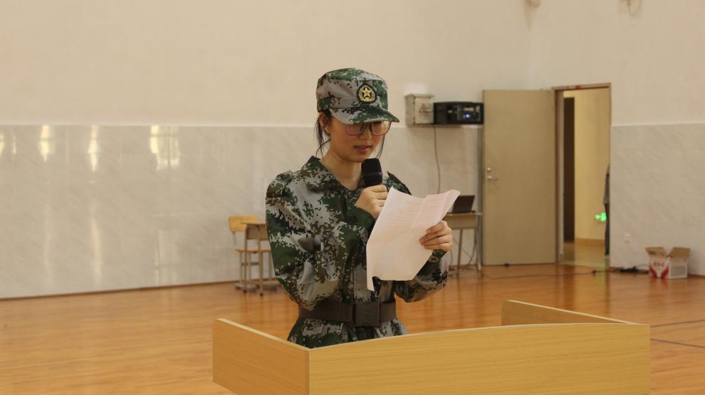 新材料及生物化工学院25高职应化02班李梦婷同学作为新生代表上台发言。她代表全体新生表达了服从指挥、刻苦训练的坚定决心,承诺将以军人的标准严格要求自己,严格遵守军训纪律,认真完成每一项训练任务。