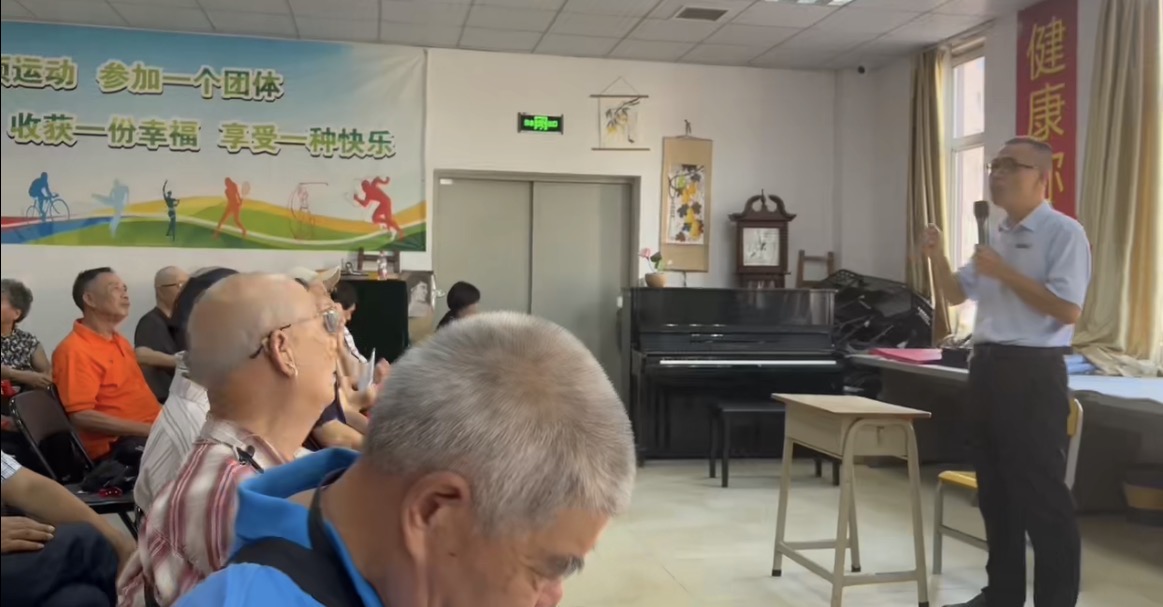 深情的纪念活动需要艺术的表达。黄美吉老师随后登台,声情并茂的朗诵《龙格龙格龙格龙》献给9·3阅兵式而创作的诗歌。他铿锵有力又饱满深情的声音,仿佛将大家带回了那场展示国威军威、昭示和平与发展的盛大阅兵现场,让老教师们感受到国家的日益强盛与民族的伟大复兴,自豪感油然而生。