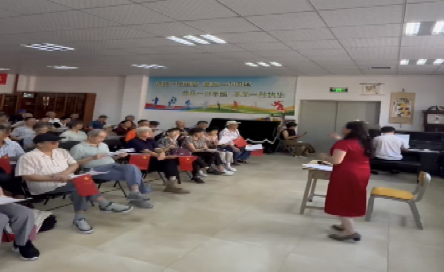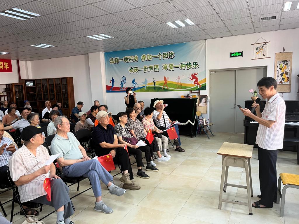 “风在吼,马在叫,黄河在咆哮,......”熟悉的旋律响起来,将活动推向高潮。在黄美吉老师的精湛悠扬钢琴声伴奏和石琦老师极富激情和感情的指挥下,全体老教师们齐声高唱《保卫黄河》《没有共产党就没有新中国》,激昂雄壮的歌声回荡在活动中心,仿佛穿越历史时空,展现了老教师们不变的初心和炽热的爱国爱党情怀。每一句歌词、每一个音符,都凝聚着老教师们对历史的铭记、对先烈的崇敬以及对党和国家的深深热爱。