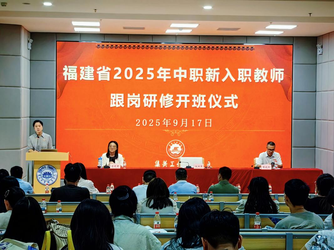 2025年9月17日上午,福建省2025年中职非师范类新教师跟岗研修开班仪式在集美工业学校隆重举行。本次跟岗研修由集美工业学校主办,以全面提升新教师教育教学实践能力为核心目标,助力福建省职业教育高质量发展。仪式由陈晓君老师主持。