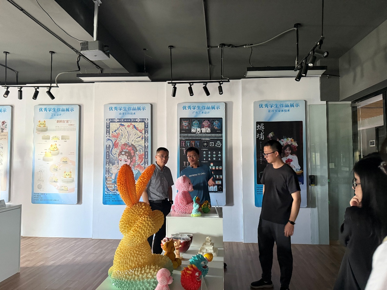 随后,闽南文化产业系一行还实地参观了省级实训基地凤凰教育产业学院、虚拟演播室、三维扫描实验室、3D打印实训中心等教学科研平台,深入了解学院在产教融合、实训教学、学生创新成果孵化等方面的实践成果。琳琅满目的学生作品、高度仿真的产业实训环境,给调研组留下了深刻印象。