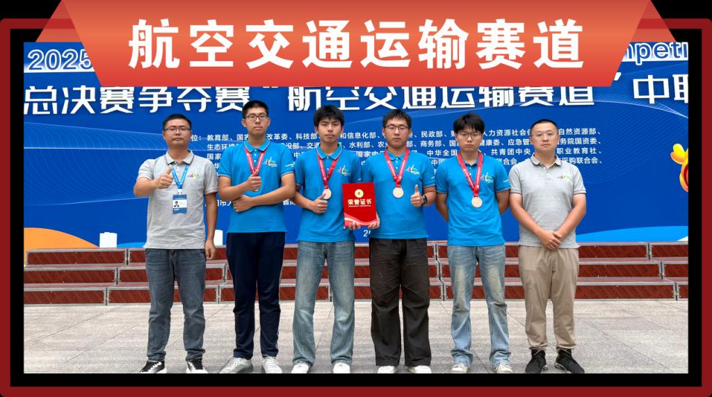 智能设备应用赛道团队凭借工业机器人、数字孪生技术创新应用,斩获全国第一名,将代表该赛道冲刺全国总决赛排位赛;食品赛道团队临危不乱,备赛关键期遇赛项规则突变,通过“一对一”高强度集训,仅一个月便达参赛标准,成功卫冕金牌;机电设备安装与运维赛道中职组比赛中,我校代表队凭借扎实技术与良好协作获银牌;会计专业学生团队更是从全国92支队伍、368名选手中脱颖而出,斩获银奖;新一代信息技术赛道是我校首次参赛,团队以智慧港口为主题荣获铜奖;航空交通运输赛道师生自主研发“固定翼、多旋翼异构子母机飞行平台”,填补行业应用空白,最终与新一代信息技术赛道、新闻传播赛道共同贡献“三铜”的好成绩。