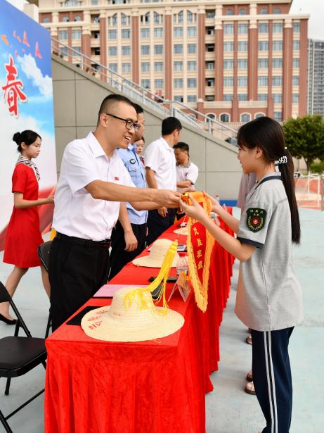 表彰环节,黄晓锋副校长宣读军训先进集体与个人表彰名单。先进集体、优秀教官代表、优秀小教官代表、优秀训练标兵代表依次上台,领导嘉宾为其颁发锦旗与证书,表彰他们在军训中的突出表现。