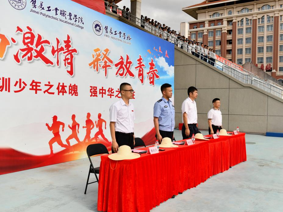 秋阳洒满田径场,豪情激荡青春心9月26日上午,集美工业学校2025级新生军训会操汇演在学校田径场隆重举行。1500余名新生以昂扬姿态展现三周军训成果,党委副书记、校长陈瑞锦、副校长欧阳超、黄晓锋及杏林派出所民警洪财望出席活动,共同见证这一青春盛典。