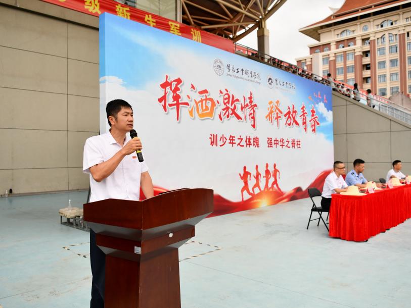 最后,党委副书记、校长陈瑞锦致辞。他向完成军训的新生表示祝贺,向教官、老师及支持单位致谢,肯定新生在纪念中国人民抗日战争暨世界反法西斯战争胜利80周年的特殊年份里,通过军训涵养的爱国情怀与奋斗精神。他以学校“诚毅勤美”校训为引,寄语新生以纪律为尺、以吃苦为帆、以技能为笔,争做规范职业人、实干者与报国追梦人,为制造强国建设贡献力量。随后,陈校长宣布军训圆满结束,学生们有序欢送领导离席。