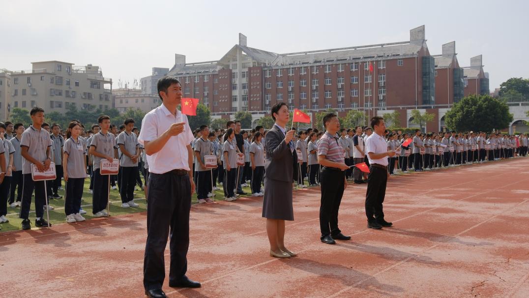 为庆祝中华人民共和国成立76周年,弘扬爱国主义精神,集美工业学校于9月30日上午在学校田径场举行庄严的升旗仪式。党委书记赵丽萍、党委副书记陈瑞锦校长率全体行政人员参加仪式,副校长黄晓锋担任主持,全体在校学生共同参与,以肃穆仪式致敬祖国华诞。