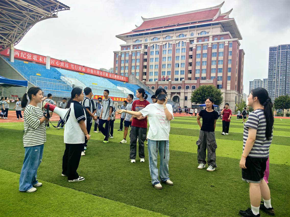 每个关卡前都排着热闹的队伍,志愿者们耐心引导、认真盖章,全程保障活动有序开展。田径场上,奔跑的身影、灿烂的笑容、欢快的呐喊随处可见,轻松的氛围彻底驱散了新同学初入校园的拘谨,让大家在游戏中尽情释放活力,享受纯粹的快乐。