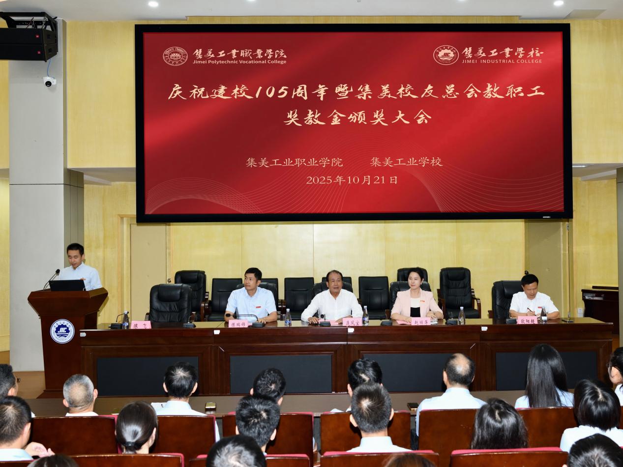 10月21日下午,我校在敬贤楼报告厅隆重举行庆祝建校105周年暨集美校友总会奖教金颁奖大会。本次大会由陈飞副校长主持,集美校友总会秘书长连凤宝、校党委书记赵丽萍、校长陈瑞锦、副校长欧阳超出席,全体教职工共同见证这一盛会。