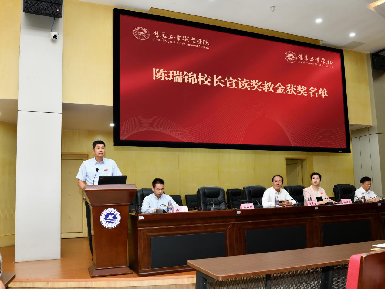 随后,集美校友总会秘书长连凤宝发表致辞。他代表集美校友总会向全校师生致以热烈的祝贺和崇高的敬意。连秘书长指出,今年学校实现办学层次的跨越,是办学史上一次辉煌的里程碑,标志着百年传承进入全新阶段。他回顾了学校105年来秉持“诚毅”校训,深耕职业教育,为国家培养了大批高素质技能人才,并强调集美校友总会始终以“服务母校、服务校友、服务社会”为宗旨。此次向学校捐赠十万元奖教金,既是对学校成功升格的祝贺,也是对全体教师辛勤耕耘的褒奖。他勉励学校在新起点上继续弘扬嘉庚精神,奋力建设一流高职院校。