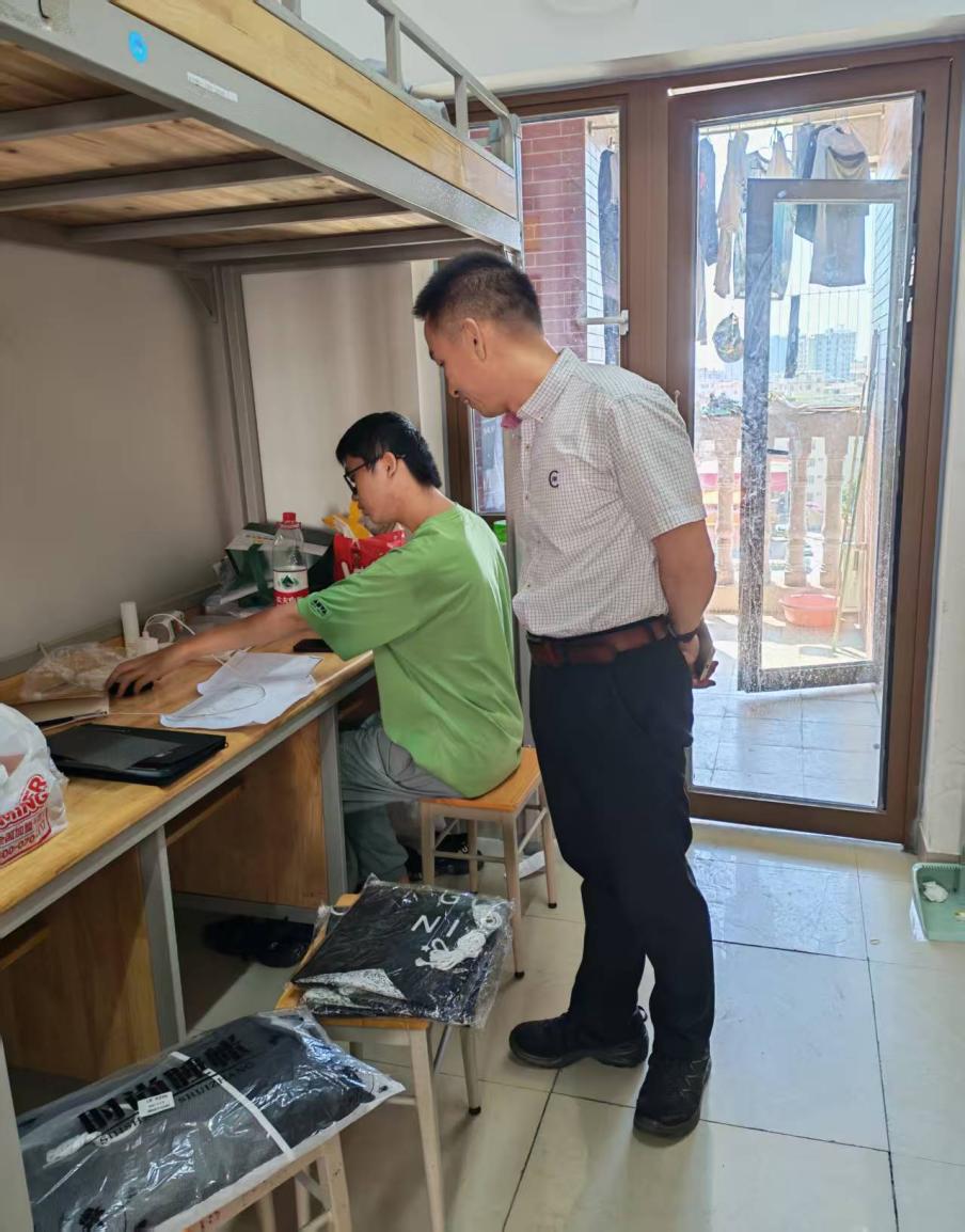 国庆中秋期间,副校长黄晓锋、陈飞也深入学生宿舍开展走访调研,通过面对面座谈与留校学生亲切交流。两位校领导重点了解同学们在学业适应、文化融入等方面的情况,详细解答了课程设置、职业发展等关切问题,让留校学子更深刻感受到校园如家的温暖,进一步坚定了他们扎根校园、追逐梦想的决心。