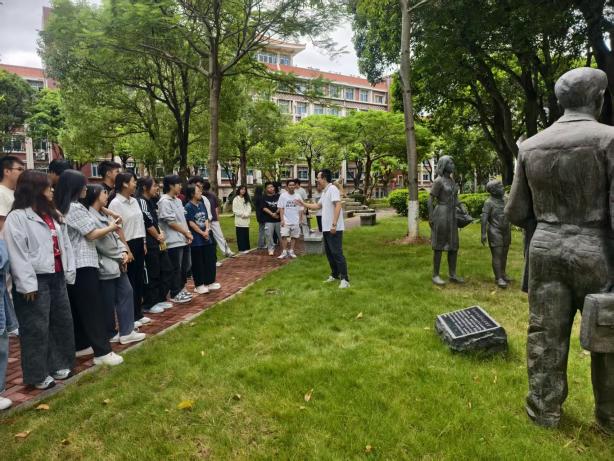 教学移出课堂,旨在通过沉浸式学习激发学生的家国情怀。学生在校园内嘉庚雕塑前郑重宣誓,承诺将传承嘉庚精神,以技能报国践行新时代青年的使命。