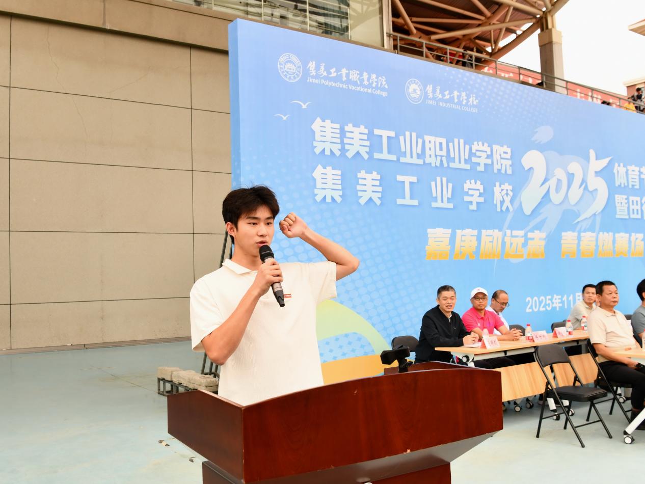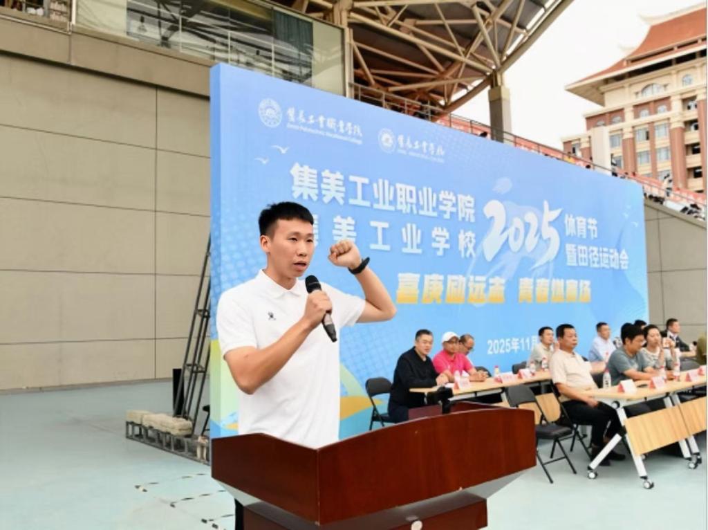 11月11日下午,集美工业职业学院、集美工业学校2025年体育节暨田径运动会开幕式在校田径场隆重举行。集美工业学校党委书记赵丽萍,党委副书记、校长陈瑞锦,副校长欧阳超,副校长黄晓锋,副校长陈飞,以及杏林派出所副所长叶已茂出席开幕式。开幕式由副校长黄晓锋主持。