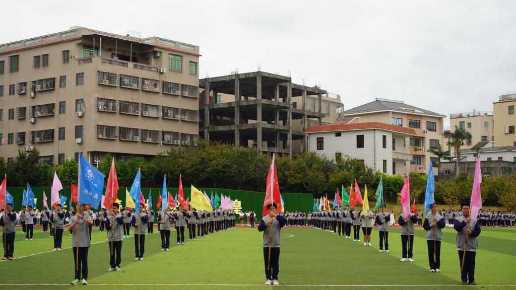 下午,运动会开幕式在激昂的旋律中庄重启幕。国旗护卫队护卫着鲜艳的五星红旗庄严入场,校旗、会旗与会标紧随其后。鲜花队以青春洋溢的表演传递美好祝愿。彩旗队步伐矫健,点燃全场热情。