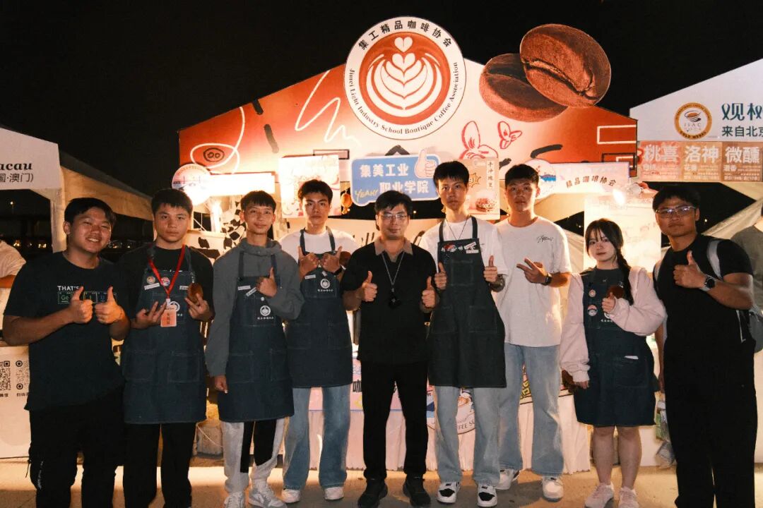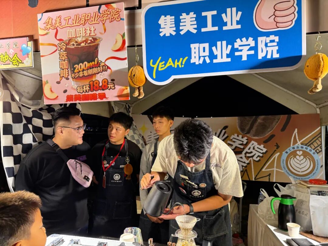 从午后到日暮,摊位前的队伍从未间断,咖啡壶续了一次又一次。当最后一杯咖啡递出时,空气中还残留着淡淡的香气。这场咖啡季的邂逅,有大咖指导的专业赋能,有领导关怀的暖心加持,更有社团成员的热血付出,让“集工咖啡社”的名字与青春、专业、热爱牢牢绑定。