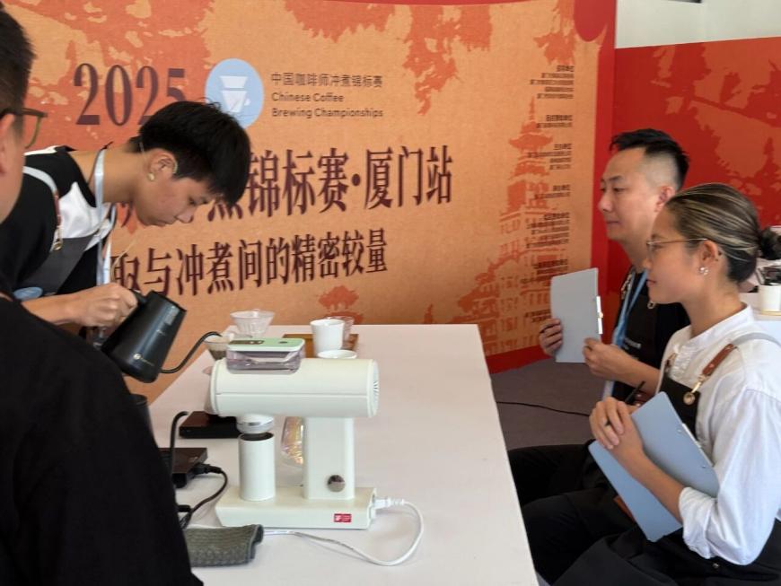 社长易哲宇代表集工咖啡社参加2025中国咖啡师冲煮锦标赛厦门站的比赛,获得优秀选手称号。
