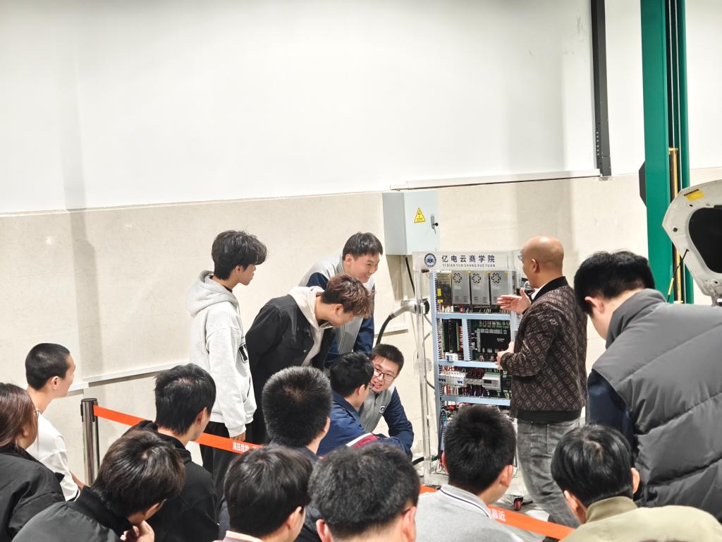 理论宣讲结束后,全体人员移步至恒毅楼一楼汽车实训车间,开启实操讲解环节。本次实操聚焦新能源汽车充电桩这一核心设备,深圳市亿电云技术有限公司负责人屈零地立足实训车间的真实设备场景,从充电桩的结构组成、安装调试流程、日常维护要点以及常见故障排查等方面进行了手把手的实操指导。他现场演示了充电桩的启动检测、接口连接、安全操作规范等关键步骤,详细讲解了交流充电桩与直流充电桩的差异及适用场景,并针对学生在实操模拟中遇到的线路识别、参数设置等问题逐一进行答疑解惑。专业教师们也全程参与实操学习,与企业负责人探讨实训教学中的重点难点问题,力求将企业一线的实操经验融入日常教学。学生们分组动手实践,近距离接触充电桩设备,在理论与实操的碰撞中加深了对专业知识的理解和掌握。