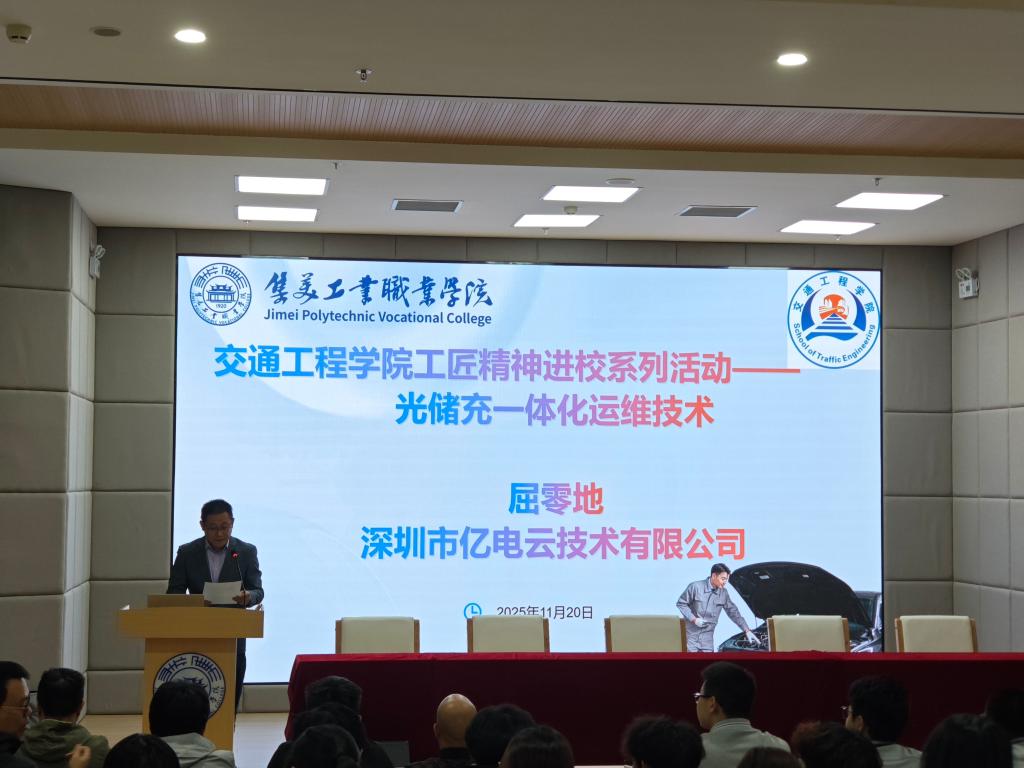 2025年11月20日,为精准对接新能源汽车产业发展需求,深化校企合作育人模式,助力高职学子夯实专业基础、提升实操能力,深圳市亿电云技术有限公司负责人屈零地走进集美工业职业学院,为新能源汽车检测与维修技术专业的学生及专业教师带来了一场兼具理论深度与实操价值的专题宣讲活动。活动分两阶段开展,分别在嘉庚楼4楼会议室和恒毅楼一楼汽车实训车间顺利举行。