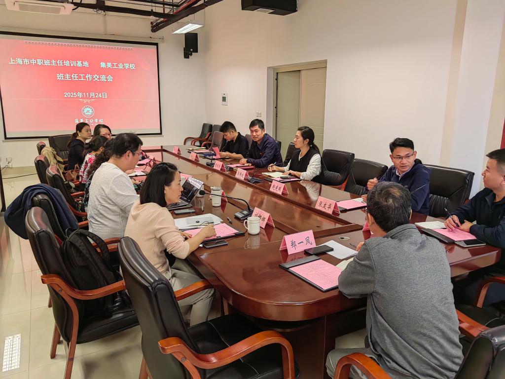 2025年11月24日上午,上海市中职班主任培训基地专家团队一行六人莅临我校交流访问。我校党委副书记、校长陈瑞锦率队热情接待,双方围绕班主任队伍建设与校园文化育人等主题展开深入交流。