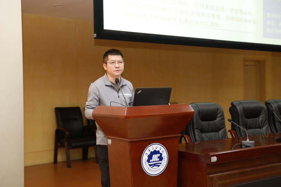 会前,全体教职工共同观看十一月份学校重点工作回顾视频。直观了解本月校园建设、教育教学、师生活动等工作推进情况。随后,各相关部门负责人围绕近期重点工作向全体教职工作汇报和说明。保卫处马传桂主任首先汇报校内人车分流实施方案,从路线规划、通行规则等方面作详细说明,旨在保障校园交通安全有序;总务处陈育辉主任介绍学校零星维修工程招标及工作进展情况,并对后半段停车场、运动场等重点改造项目的推进计划进行了说明;人事财务处张太山副主任介绍二级教学部门考核实施方案,明确考核意义、考核指标、评分标准、结果应用,为教学部门规范化管理提供依据;教务处陈晓君副主任围绕教学常规落实、培优辅弱推进等方面,汇报了近期教育教学工作及下一步计划。