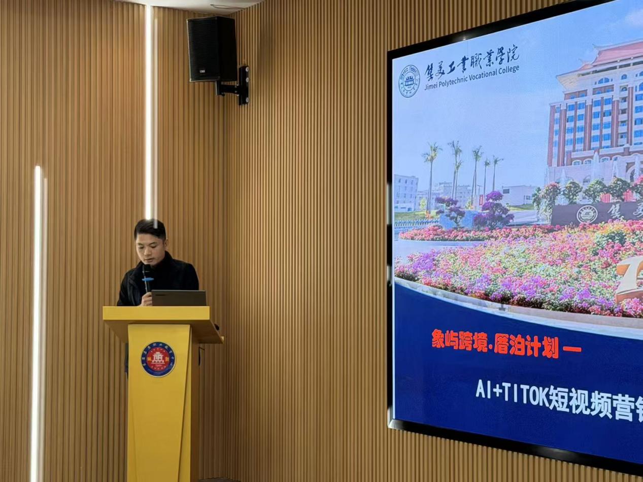 2025年11月25日下午,由象屿跨境电商产业园与我校联合主办的“AI+TikTok短视频赋能跨境电商人才培养项目”开班仪式在嘉庚大楼一楼东盟嘉庚职教中心隆重举行。本次仪式标志着以“泊”文化跨境平台为核心的实战型人才培养计划正式启动,旨在通过AI技术与短视频营销的深度融合,破解跨境电商人才短缺难题,推动非遗文化与全球贸易的创新发展。