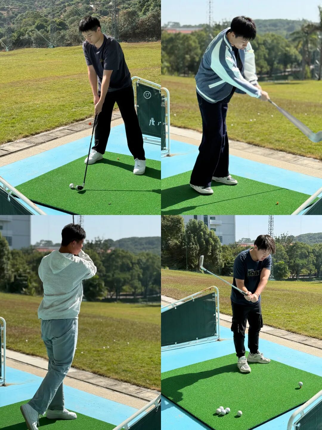 厦门大学嘉庚学院高尔夫球协会会长朱守奇亲自担任指导,从握杆姿势、站姿到挥杆动作,他耐心细致地讲解和演示高尔夫球的基本技巧。原本对高尔夫球感到陌生的我们,在朱会长的指导下,逐渐掌握了基本动作要领,开始享受这项优雅的运动。