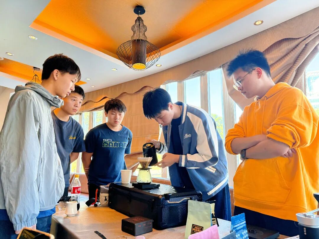 在轻松愉快的氛围中,两校咖啡社的成员们互相学习、交流心得,不仅提升了咖啡制作技艺,更深化了对咖啡文化的理解。小小的咖啡馆里,咖啡香气四溢,欢声笑语不断。