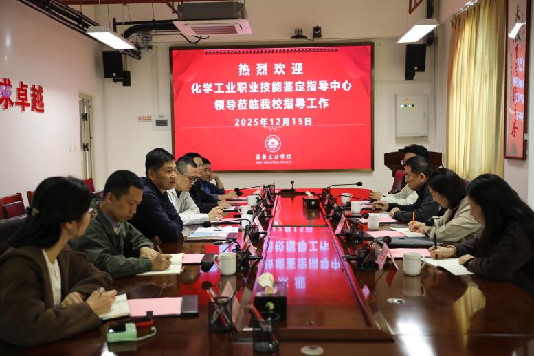 12月15日下午,化学工业职业技能鉴定指导中心主任沈磊、副主任刘东方等一行4人莅临我校考察交流。双方在嘉庚楼十楼第一会议室召开专题座谈会,围绕技能人才培养、职业技能鉴定等工作进行深入交流。我校党委副书记、校长陈瑞锦,副校长黄晓锋,招生与社会培训处、现代化工产业系相关负责人参加座谈
