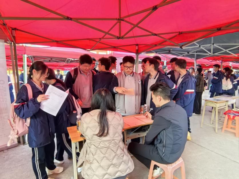 校领导亲临现场指导工作,副校长欧阳超与森一量子科技有限公司负责人亲切交谈,深入探讨人才培养、校企协同育人等合作事宜。同时细心询问学生求职进展,鼓励大家精准定位职业方向。各企业展位前都围满了咨询的学生,他们手持精心准备的简历,主动向企业代表了解岗位要求、薪资福利及职业发展路径。企业招聘人员则通过图文展示、现场演示等方式,全面介绍企业优势与岗位特色。
